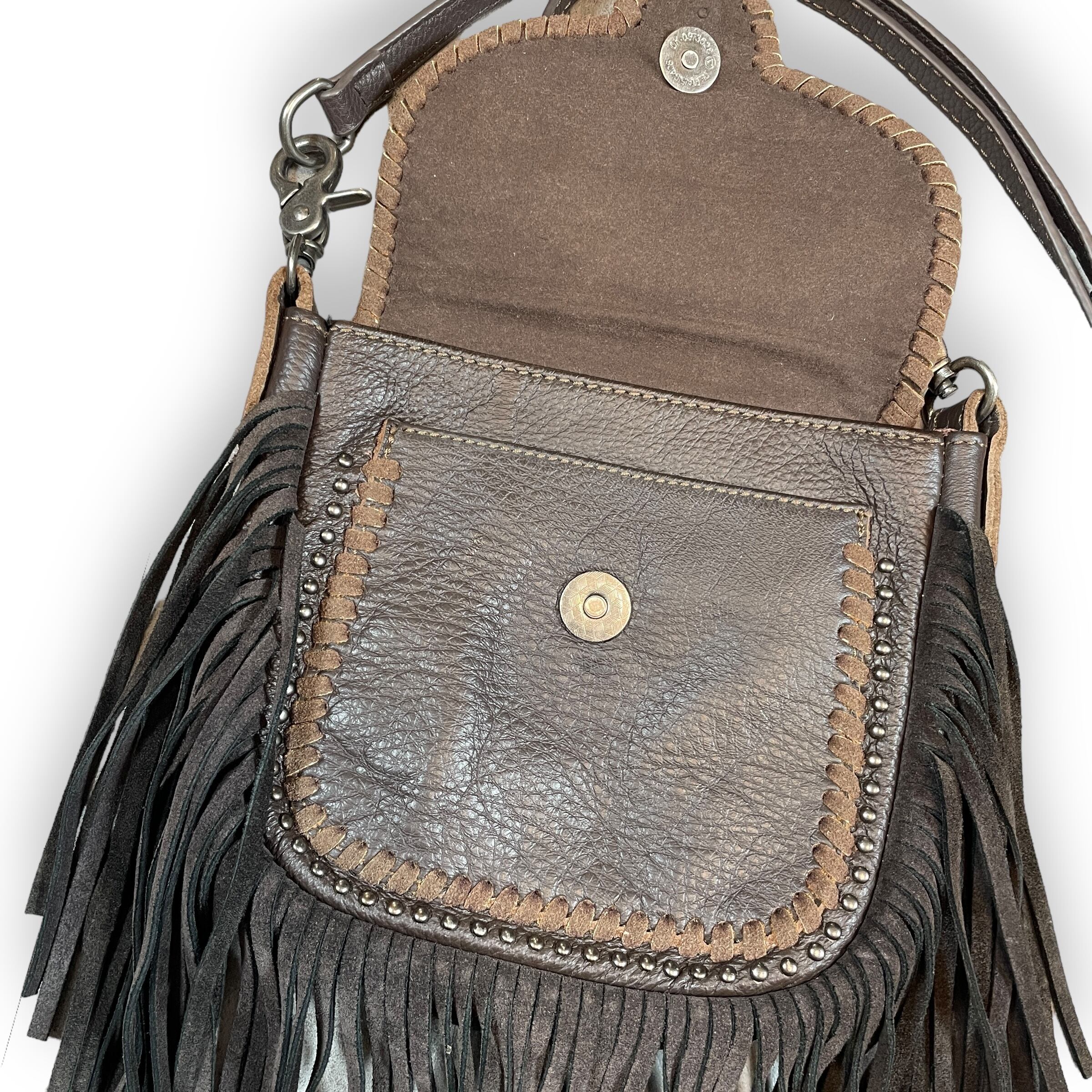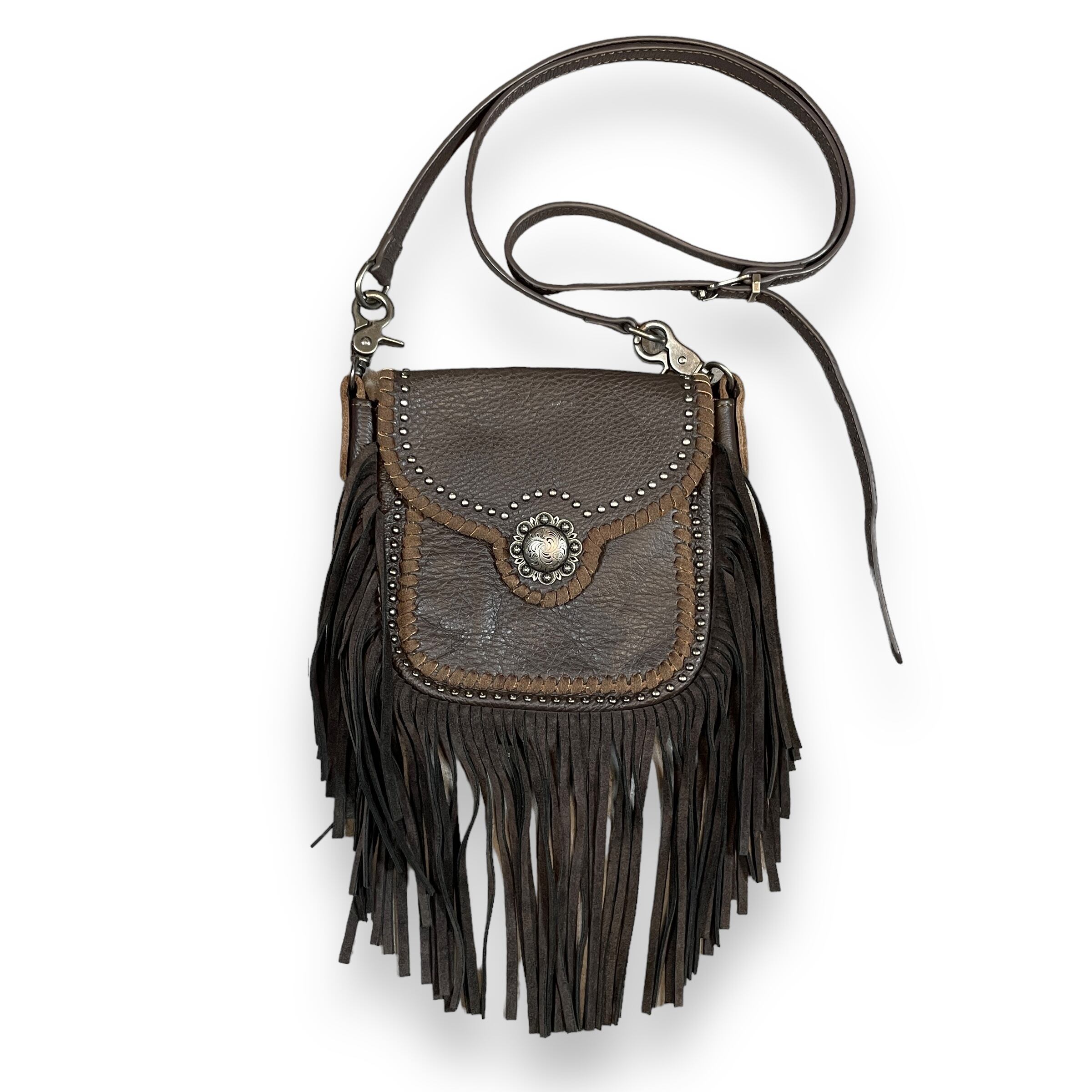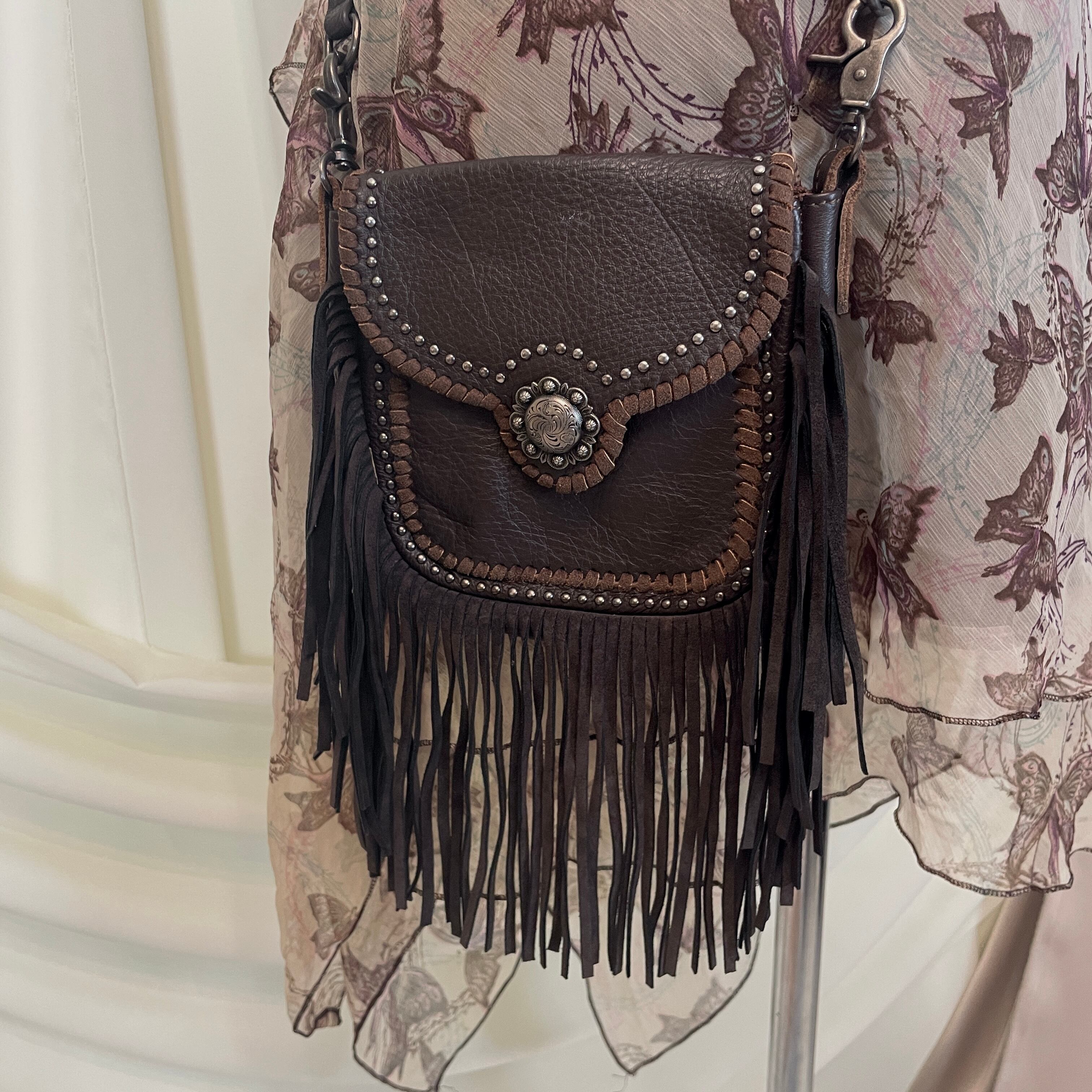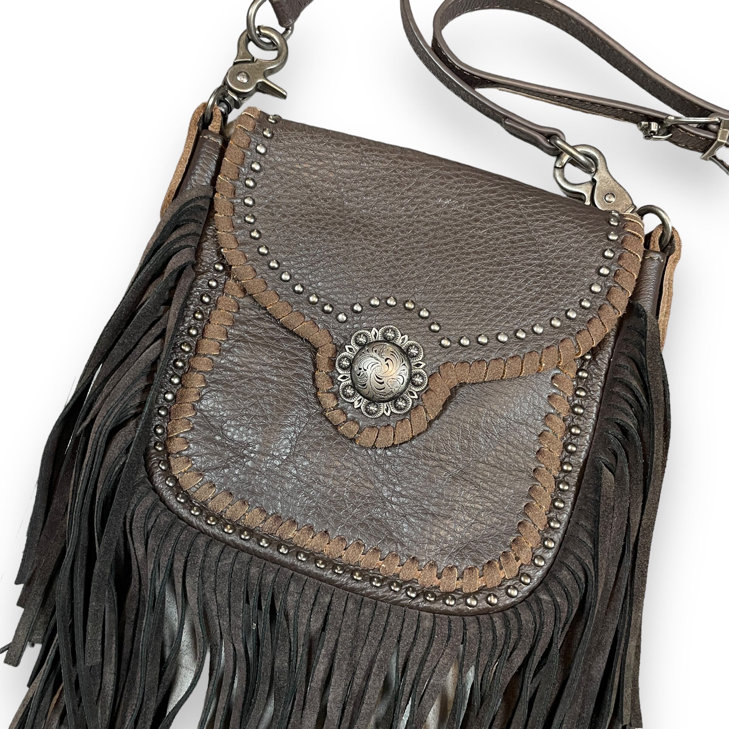 vintage leather fringe shoulder bag